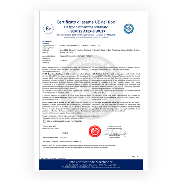 Beijing Dorland System Control Technology Co., LTD.에서 개발한 산업용 본질 안전 태블릿 PC/PAD EX Pad 07 4G(ATEX)는 본질 안전 회로, 8.0인치 터치 스크린 및 5메가픽셀(전면 카메라)+32메가픽셀(자동 초점 기능이 있는 후면 카메라) 카메라를 갖춘 독일의 첨단 기술을 채택했습니다. 방수 및 방진 성능은 IP67 표준을 충족할 수 있습니다.