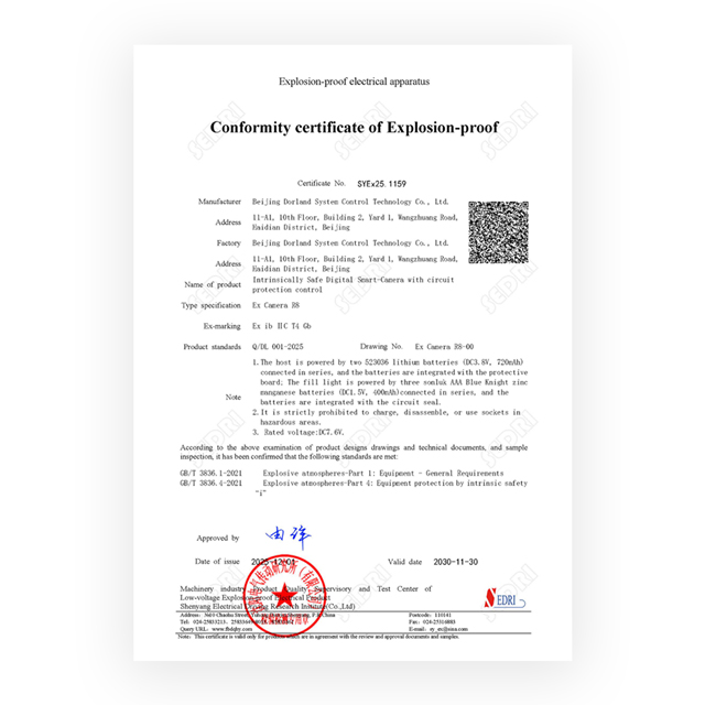 Beijing Dorland System Control Technology Co., Ltd.는 최근 Canon이 독자적으로 개발한 24-105mm 렌즈와 새로운 RF 마운트를 사용하는 회로 보호 제어 Ex Camera R8을 갖춘 본질 안전 디지털 스마트 카메라를 출시했습니다. 광학 설계는 더 유연하고 높은 이미지 품질을 쉽게 얻을 수 있습니다. 일상 사진 촬영에 일반적으로 사용되는 초점 거리를 포괄하는 약 4.4배 줌으로 클로즈업 사진을 쉽게 촬영하고 개인화된 사진 효과를 얻을 수 있습니다. 약 5레벨에 해당하는 최대 셔터 속도를 갖춘 IS 손떨림 보정 기능은 촬영을 강력하게 지원합니다.